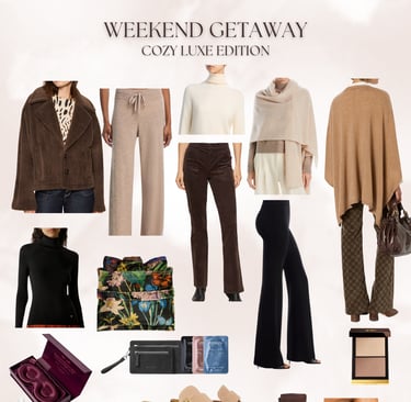 Cozy luxe isn’t about staying in loungewear all day (though I won’t judge if you do). It’s about intentional ease—pieces that make you feel both comfortable and polished. Here’s the formula I swear by for a weekend getaway wardrobe: